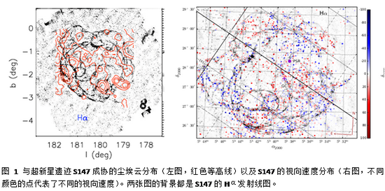 基于LAMOST的海量巡天数据,团组成员陈丙秋博士牵头对近邻超新星遗迹S147进行了详细研究,发现了与S147成协的尘埃云,并首次对S147的整体运动学和辐射性质进行了超精细刻画、分析和研究。