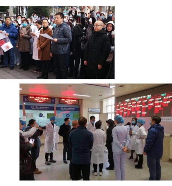 2020年1月23日,韦嘉主持召开医院党委会,研究决定向全院共产党员发出倡议,取消全院春节休假,号召全体党员,勇为先锋,勇挑重担,全力以赴抗击疫情,充分发挥共产党员的先锋模范作用。当晚,韦嘉在医院微信群分享了倡议书,他说:“为了人民的健康,我们不忘初心”。